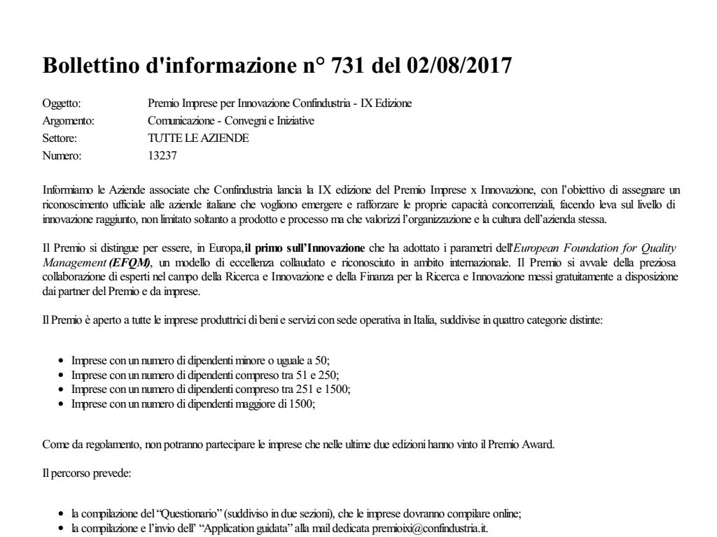Premio Imprese per Innovazione Confindustria - IX Edizione