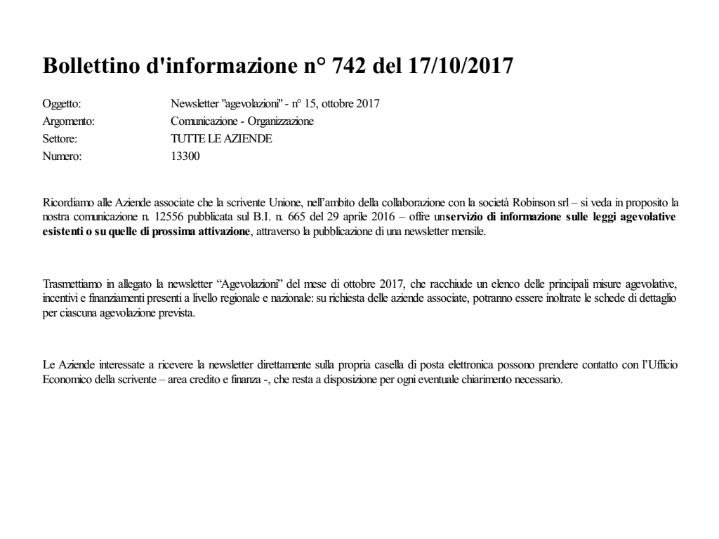 Newsletter "agevolazioni" - n° 15, ottobre 2017